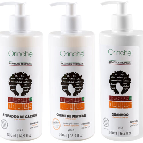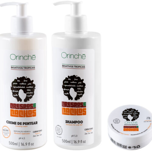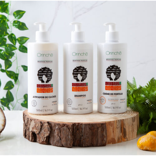 • Kit Orinchê Bioativos Tropicais – Ativador de Cacho 500 ml + Creme De Pentear 500 ml + Shampoo 500 ml.